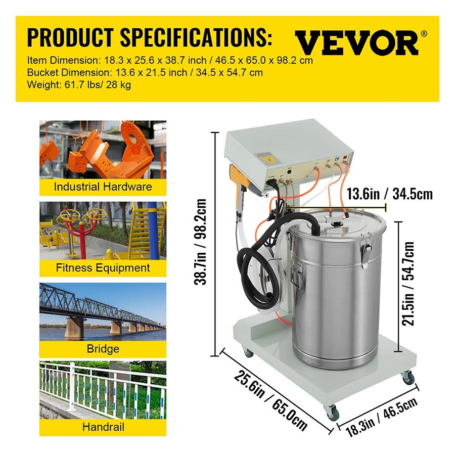 VEVOR WX-101 Machine de revêtement électrostatique en poudre 45L 50W avec pistolet pulvérisateur Machine de Thermolaquage