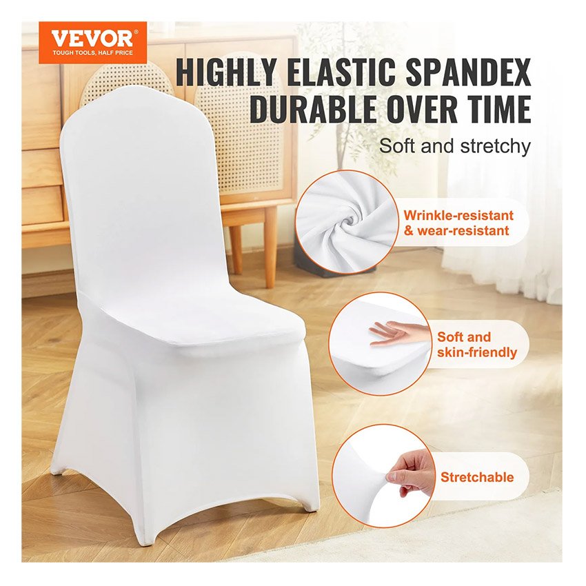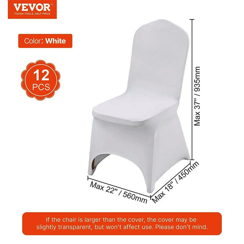 VEVOR Housses de chaise pliantes en élasthanne extensible, 12 pièces, housses de protection universelle, amovibles et lavables, pour mariage, vacances, banquet, fête, célébration, salle à manger, blanc