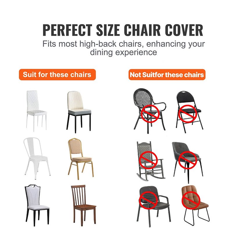 – Compatibilité avec de nombreuses chaises : Ces housses de chaise pliantes en élasthanne extensible sont de taille standard et s’adaptent à la plupart des chaises sans accoudoirs, notamment les chaises de salle à manger, les chaises empilables, les chaises de banquet et les chaises pliantes. Dimensions de chaise compatibles (L x P x H) : 400 x 420 x 770 mm (15,7 x 16,5 x 30,3 pouces).