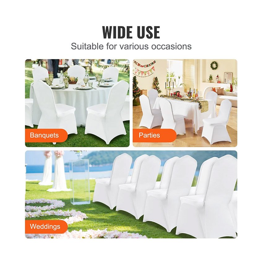 – Design élégant : Ces housses de protection amovibles et lavables de haute qualité sont confectionnées dans un tissu haut de gamme au design simple et élégant. Elles harmonisent l’apparence de vos chaises et transforment vos anciennes chaises en de magnifiques sièges pour vos réceptions de mariage. Idéales pour les mariages, les fêtes, les banquets, les réceptions et autres célébrations.