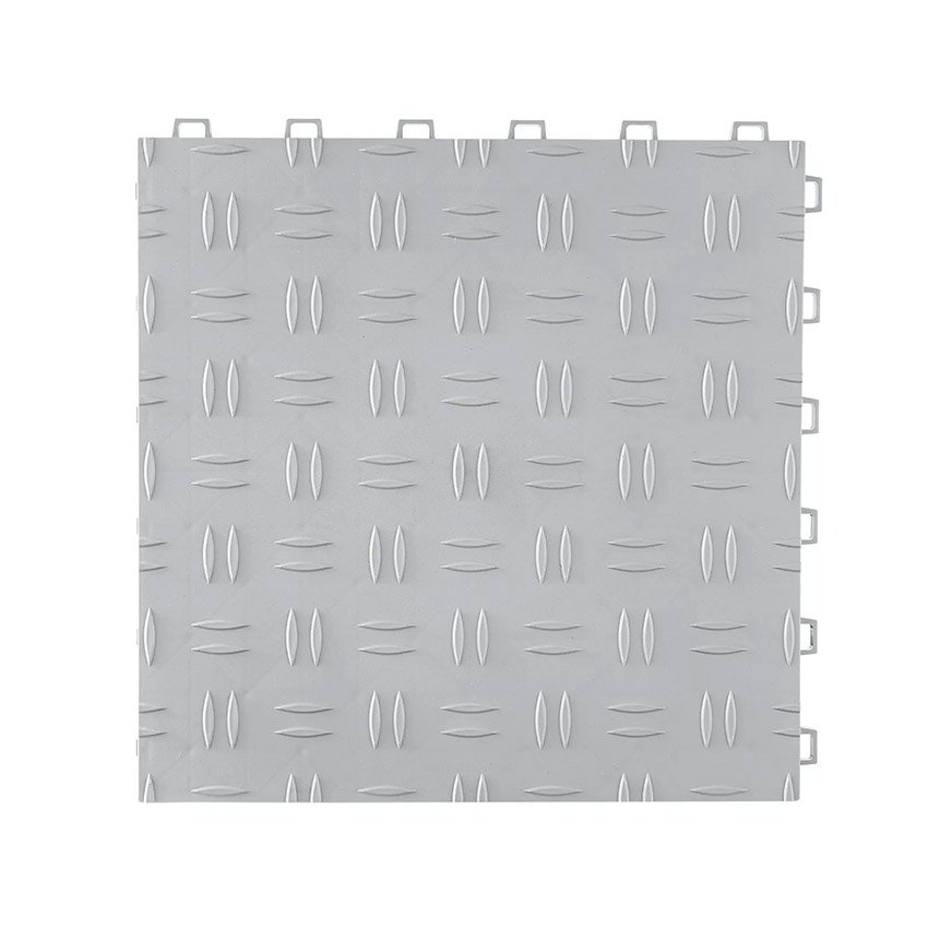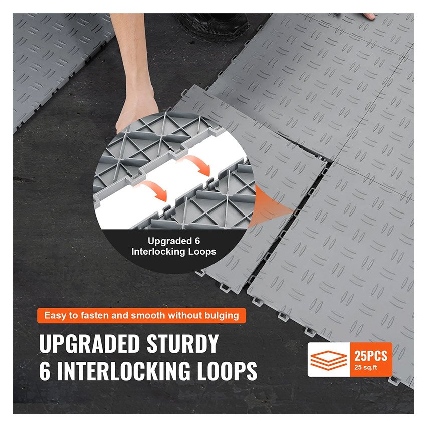 VEVOR Dalles de garage emboîtables lot de 25, revêtement de sol garage PP, 305 x 305 x 13,4 mm, texture double face antidérapante, pour protection garages, sous-sols, ateliers de réparation, argenté
