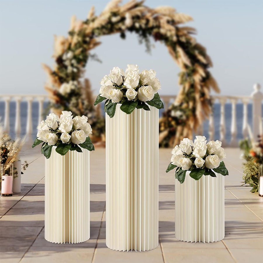Lot de 3 vases en carton de mariage – Support de colonne – Pour mariage, décoration de fête, jardin – Blanc (40 cm + 60 cm + 80 cm)