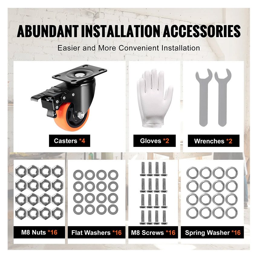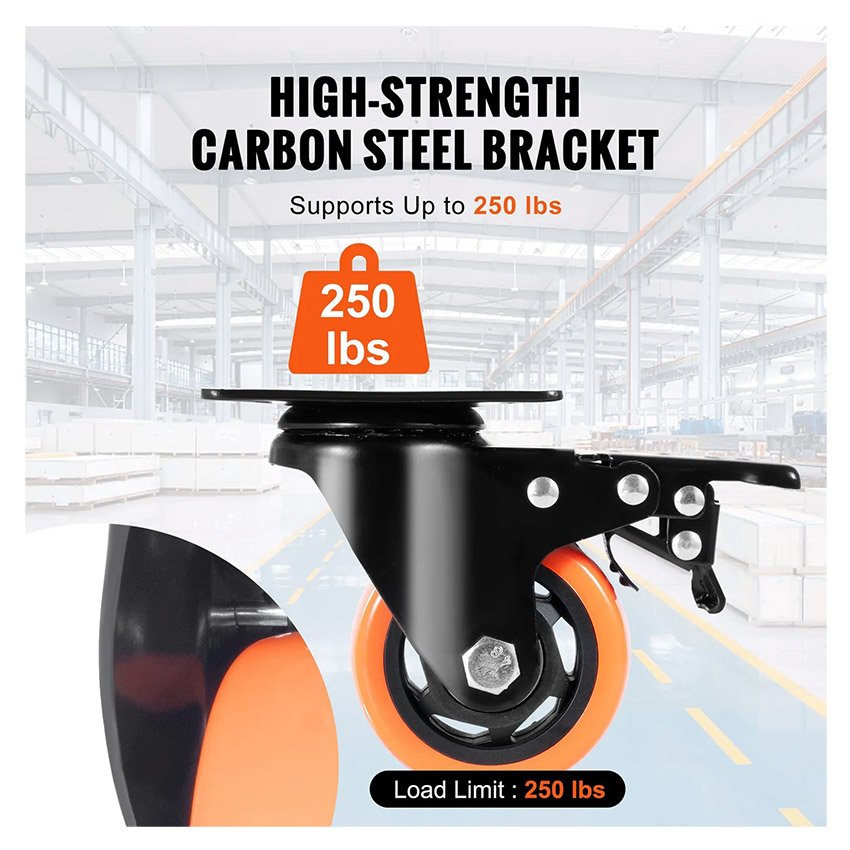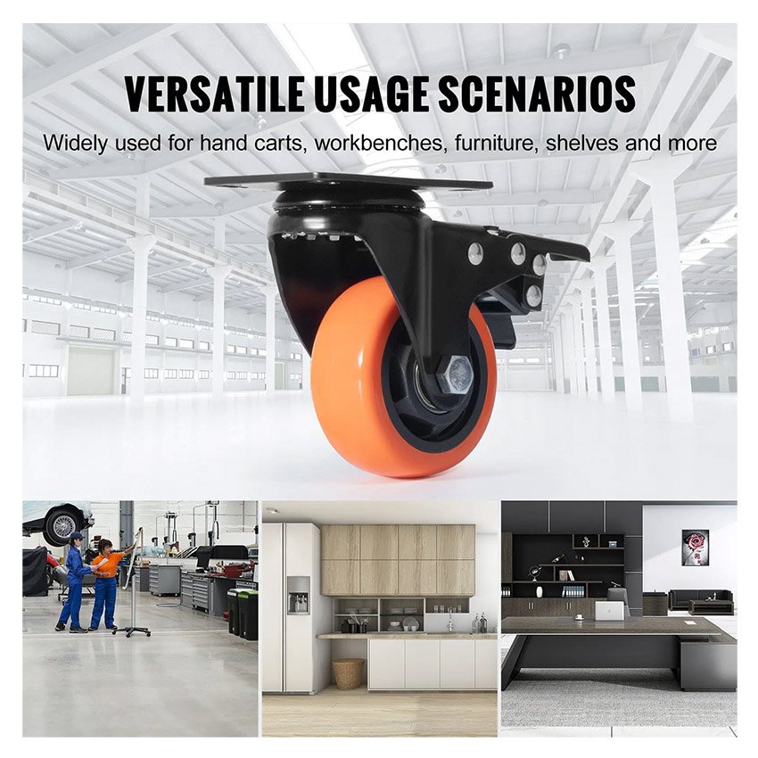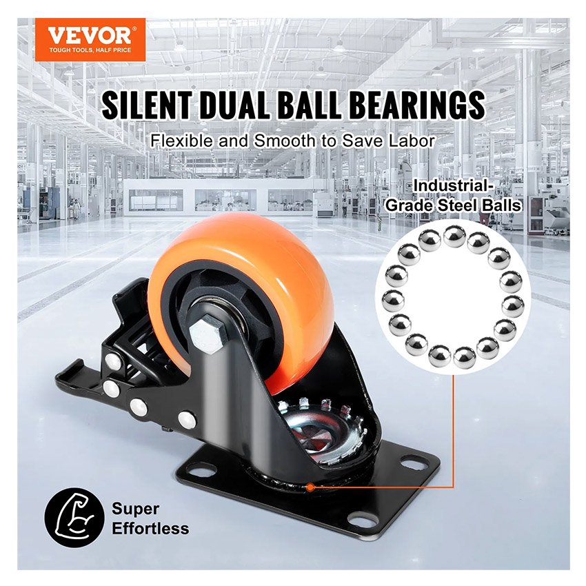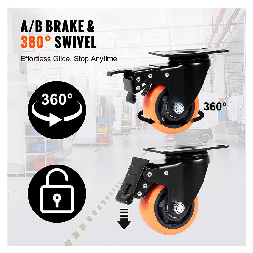Roulettes pivotantes de 7,6 cm, ensemble de 4, avec système de verrouillage de sécurité A/B, roues en PVC silencieuses, capacité de charge robuste de 113 kg par roulette, roues non marquantes pour chariot, meubles et établi
