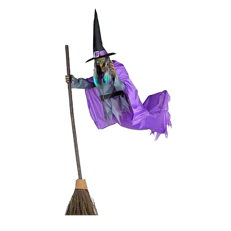 Sorcière effrayante volante, Sorcière d’Halloween en plein air avec balai décorations maison hantée d’apparence réaliste