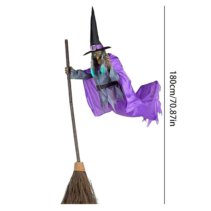 – Expérience d’Halloween surélevée : avec ses yeux bleus étranges et son effet sonore qui picote la colonne vertébrale, décorations de sorcière volante garantissent un niveau supérieur d’effroi et de divertissement à votre décoration d’Halloween.