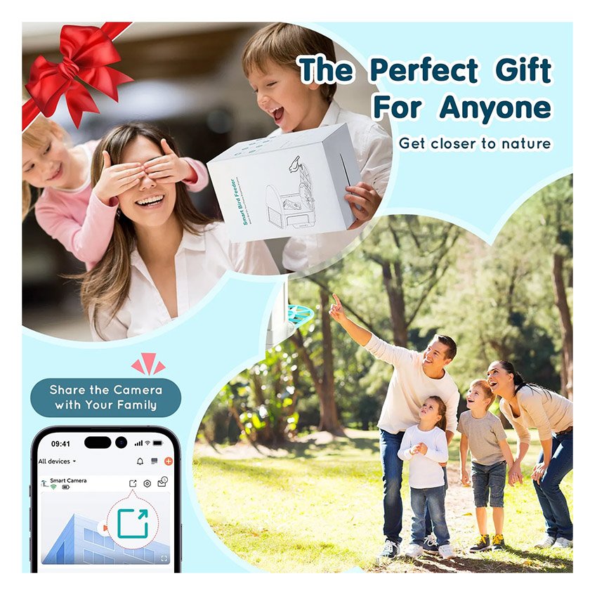 – Cadeau parfait pour les amoureux des oiseaux : IP65 étanche à l’eau et à la poussière, cette caméra d’observation des oiseaux est durable et parfaite pour une utilisation en extérieur. C’est un cadeau attentionné pour la famille et les amateurs d’oiseaux, offrant un plaisir d’observation des oiseaux sans fin et un lien plus étroit avec la nature. Prenant en charge plusieurs appareils, il vous permet de partager de délicieux moments d’observation des oiseaux avec vos proches.