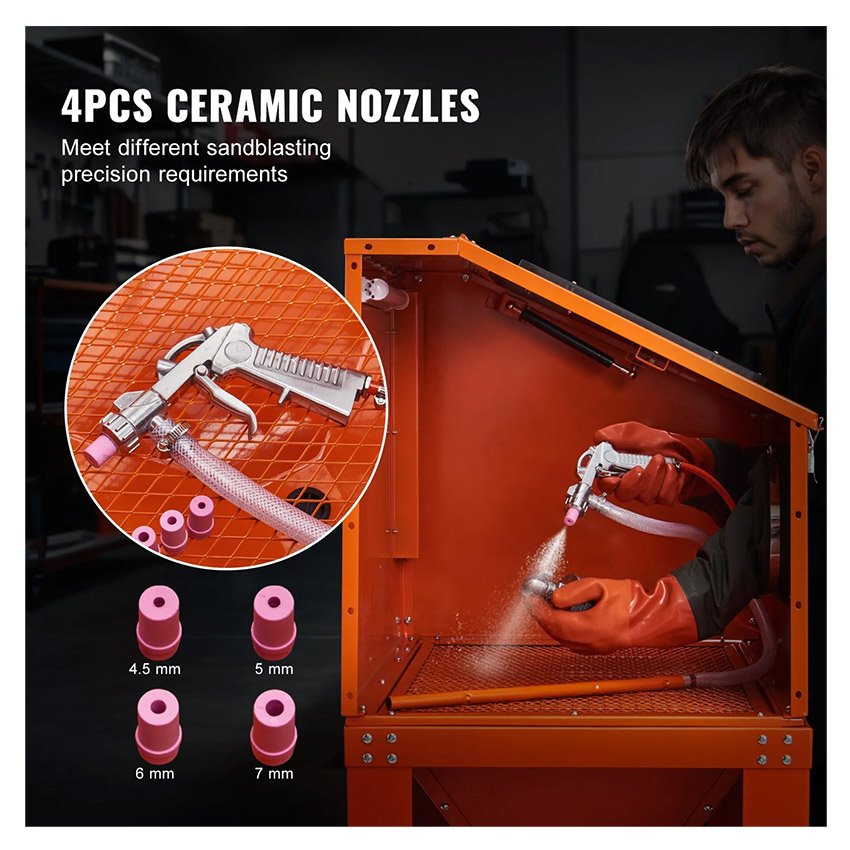 – Visibilité claire, efficacité optimale : avec une grande fenêtre en acrylique et un éclairage LED lumineux, cette armoire de sablage offre une vue étendue et une haute visibilité pendant les tâches de sablage. Il comprend 4 protecteurs d’objectif, éliminant ainsi les tracas liés à l’achat d’accessoires séparés.