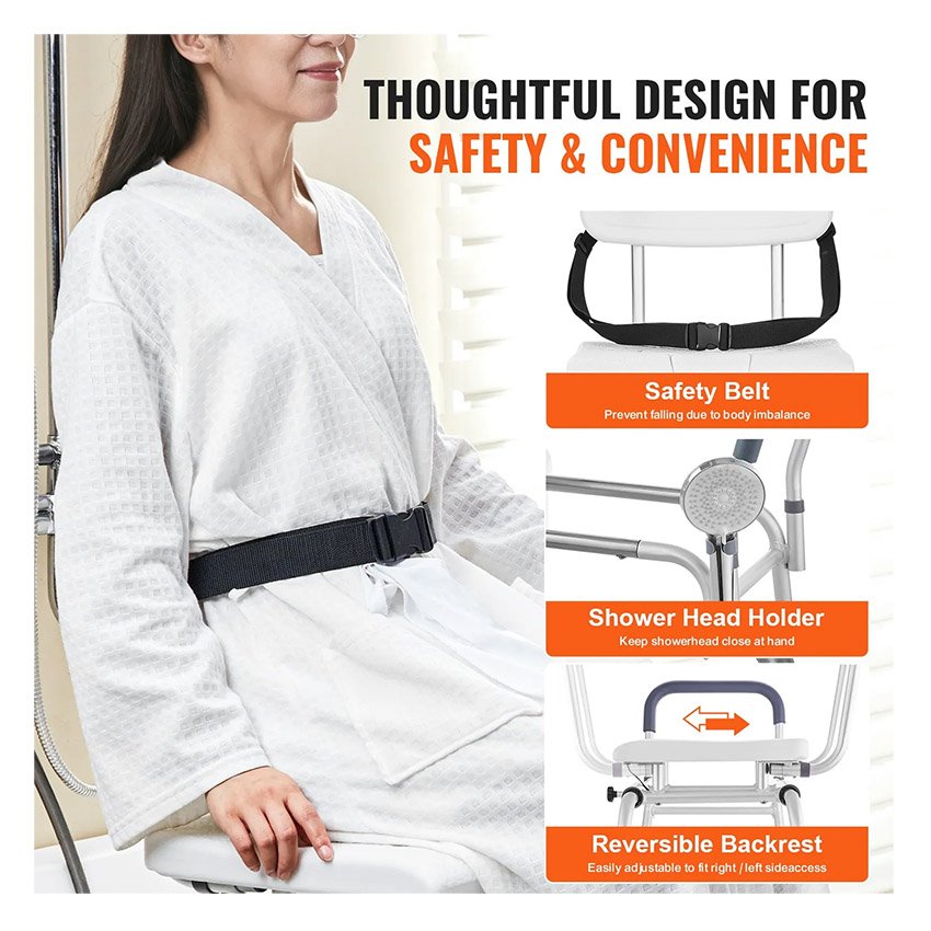 – Conception conviviale : nos chaises de bain de douche pour personnes âgées sont dotées d’un dossier réversible qui peut être installé de chaque côté, facilitant l’entrée et la sortie du bain. Il comprend également un support de pommeau de douche pour garder votre pommeau de douche à portée de main. L’assemblage est rapide et sans outil : il suffit de le déballer, de l’installer et de profiter d’une expérience de bain plus sûre !