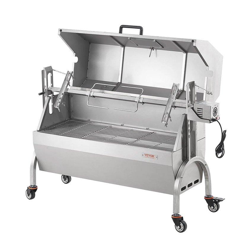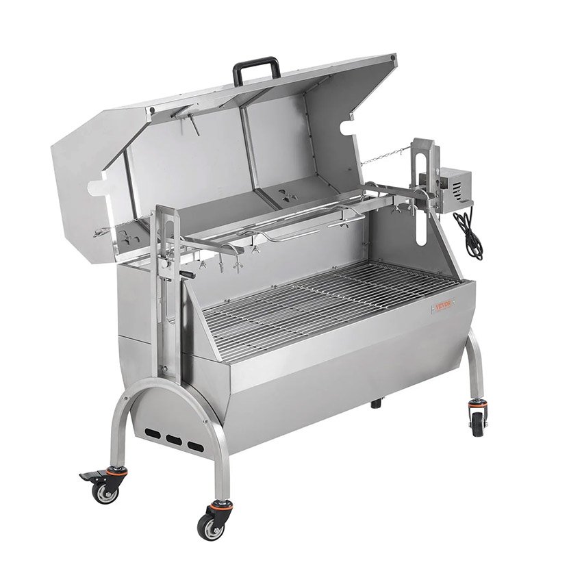 VEVOR Barbecue à Charbon avec Tournebroche Électrique 52 W Charge 90 kg, Rôtissoire Barbecue avec Couvercle, en Inox, Roues Verrouillables, pour Agneau Porcelet Poulet