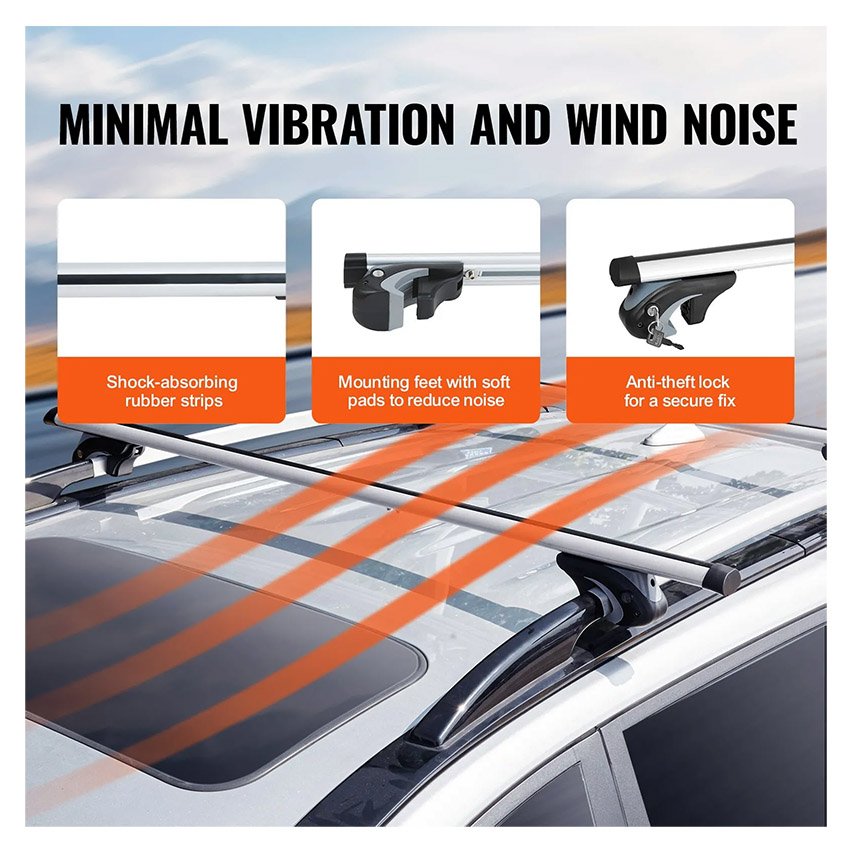 ✔ Sans bruit et sans vibrations : la conception aérodynamique du tube en aluminium minimise la résistance au vent et le bruit, tandis que les coussinets en caoutchouc sur les pieds de montage protègent votre véhicule des rayures et assurent un voyage paisible sans perturbations pour vous ou vos enfants.