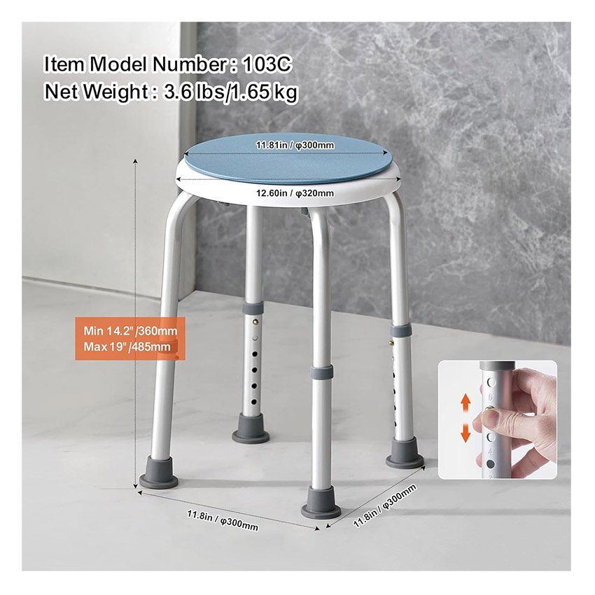 – Structure stable de 136 kg : conçu en polypropylène et en alliage d’aluminium de qualité industrielle, notre tabouret de douche supporte jusqu’à 136,1 kg. La chaise de douche pour douche intérieure combine une structure antirouille et résistante à la corrosion avec un design léger, assurant un transport facile. Idéal pour les personnes âgées, les personnes handicapées, les femmes enceintes et les patients post-opératoires.