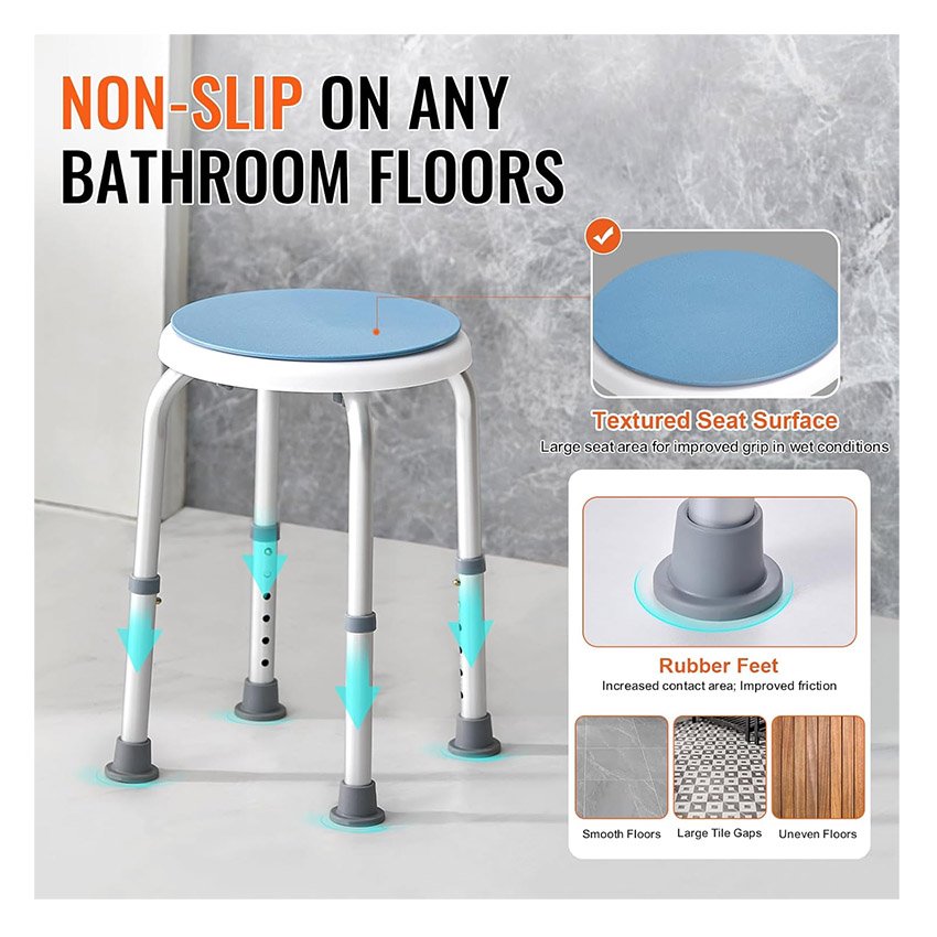 VEVOR Chaise de douche rotative à 360 degrés, siège de douche réglable en hauteur, chaise de bain pour douche ou baignoire, banc antidérapant, tabouret de baignoire pour personnes âgées handicapées,
