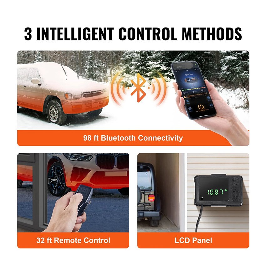 ✔ Téléphone = Contrôleur : Notre dernier réchauffeur diesel amélioré est doté d’une commande Bluetooth pour une plus grande commodité. Il suffit de télécharger l’application et de contrôler le préchauffage de votre chauffage à une distance maximale de 30 m. Il est également livré avec une télécommande de 10 m et un écran LCD. Vous pouvez choisir la méthode de contrôle qui vous convient le mieux. La température peut être réglée entre 8 °C et 36 °C, pour répondre à vos besoins spécifiques.