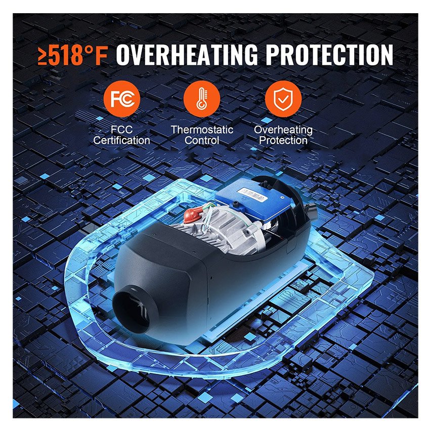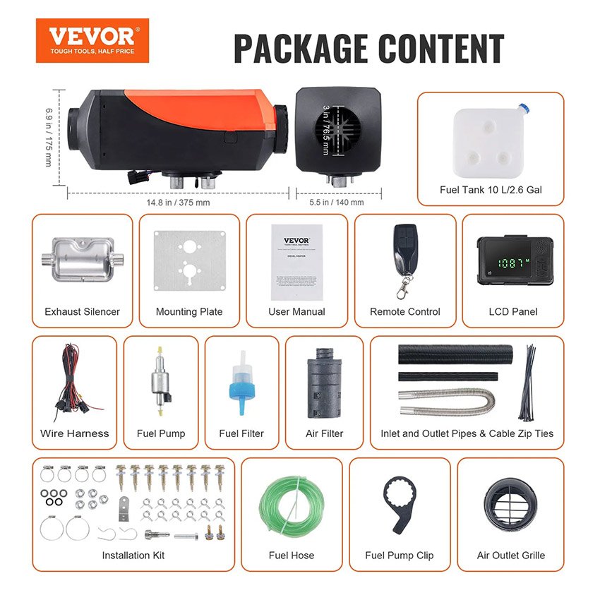 ✔ Compensation Automatique de l’Altitude : Notre chauffage à air diesel est équipé d’un système de compensation automatique de l’altitude, ce qui le rend adapté à des altitudes allant jusqu’à 5500 mètres. Il ajuste son fonctionnement en fonction de l’altitude, de sorte que vous n’avez pas à le contrôler manuellement. Profitez d’une performance de chauffage sans faille, même dans les environnements de haute altitude.