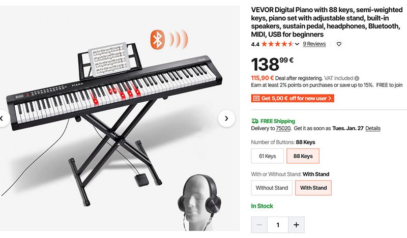 – Clavier piano numérique à 88 touches : Découvrez la polyvalence de notre clavier piano semi-lesté à 88 touches, équipé de 1000 sonorités, 1000 rythmes et 150 morceaux de démonstration pour inspirer votre créativité musicale. Les touches de taille standard, associées aux autocollants de piano inclus, permettent aux débutants de maîtriser plus facilement le placement des doigts et de s’entraîner efficacement.