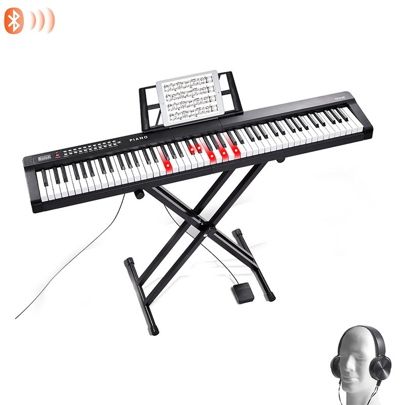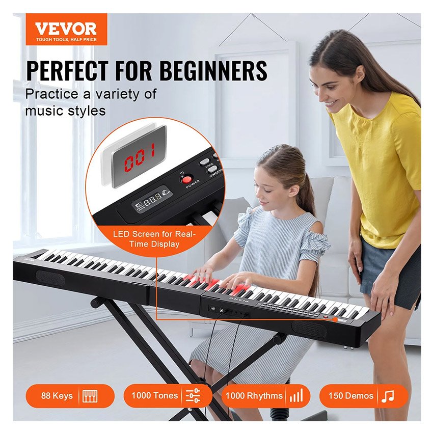VEVOR Clavier Piano Numérique 88 Touches Semi-lestées, Ensemble Piano à Clavier Électrique avec Support Réglable, Haut-parleurs Intégrés Pédale de Sustain Casque Bluetooth MIDI USB pour Débutants