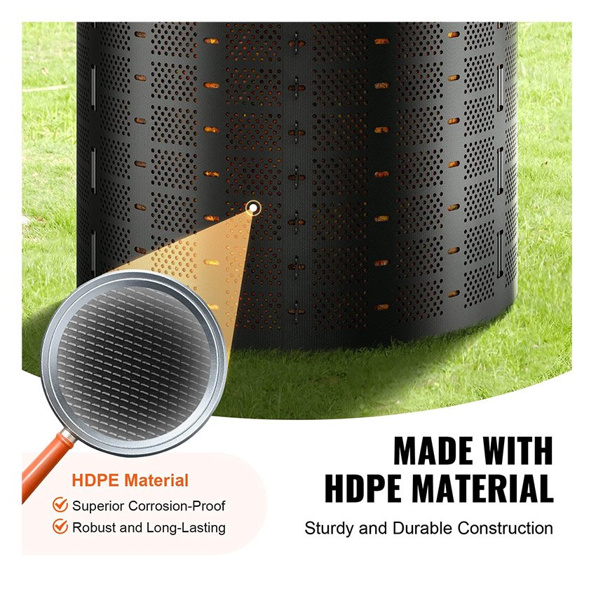 – Matériau PEHD de qualité supérieure : Fabriqué en PEHD de haute qualité, ce lombricomposteur est résistant à la corrosion et à la chaleur, et extrêmement durable. Il supporte les intempéries et a une durée de vie supérieure à celle des lombricomposteurs fabriqués avec d’autres matériaux.