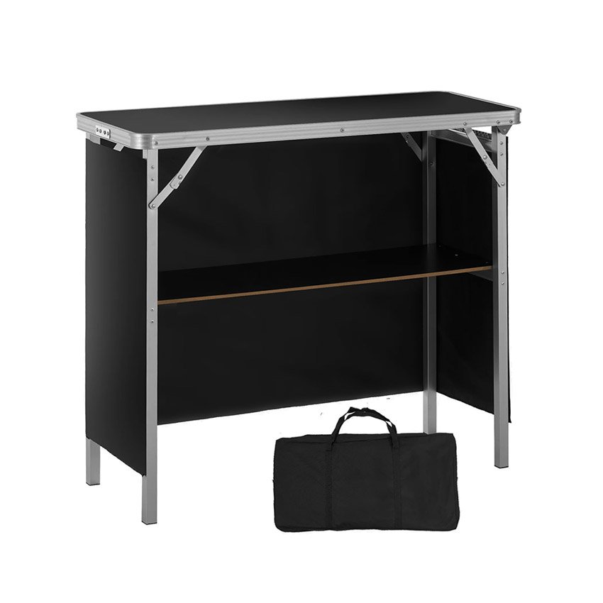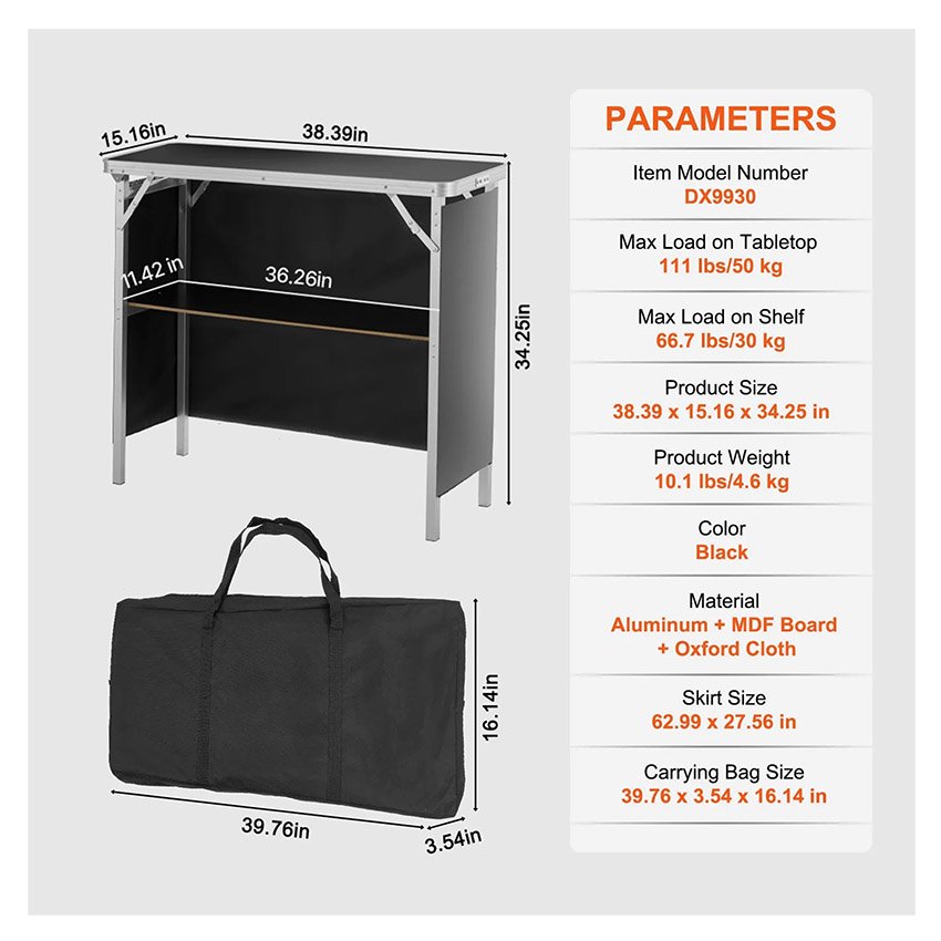 VEVOR Comptoir de Stand Foire Salon 97,5 x 38,5 x 87 cm Table de Bar Pliante Longue et Portable avec Sac de Transport ĂtagĂšre de Rangement et Jupe Noire pour FĂȘte Pique-nique Exposition Commerciale