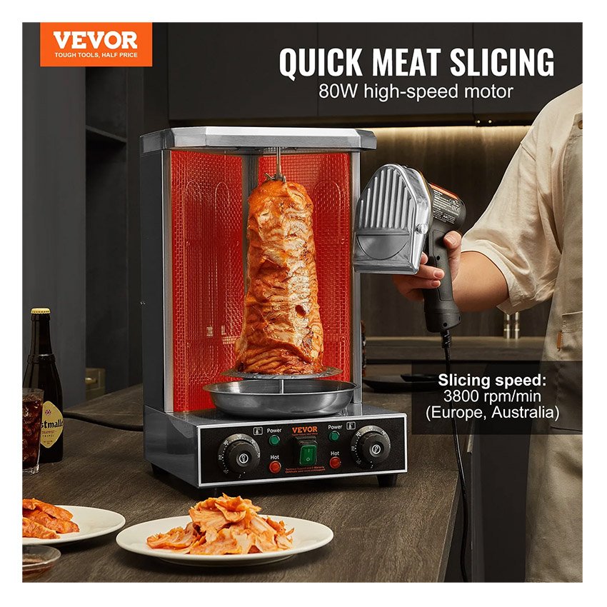 ✔ Coupe rapide : équipée d'un moteur de 80 W, cette trancheuse à kebab turque professionnelle s'associe à des lames tranchantes pour vous permettre de trancher rapidement le barbecue. Cela améliore considérablement votre efficacité de travail.