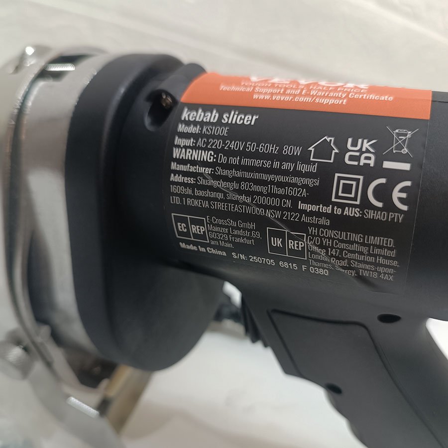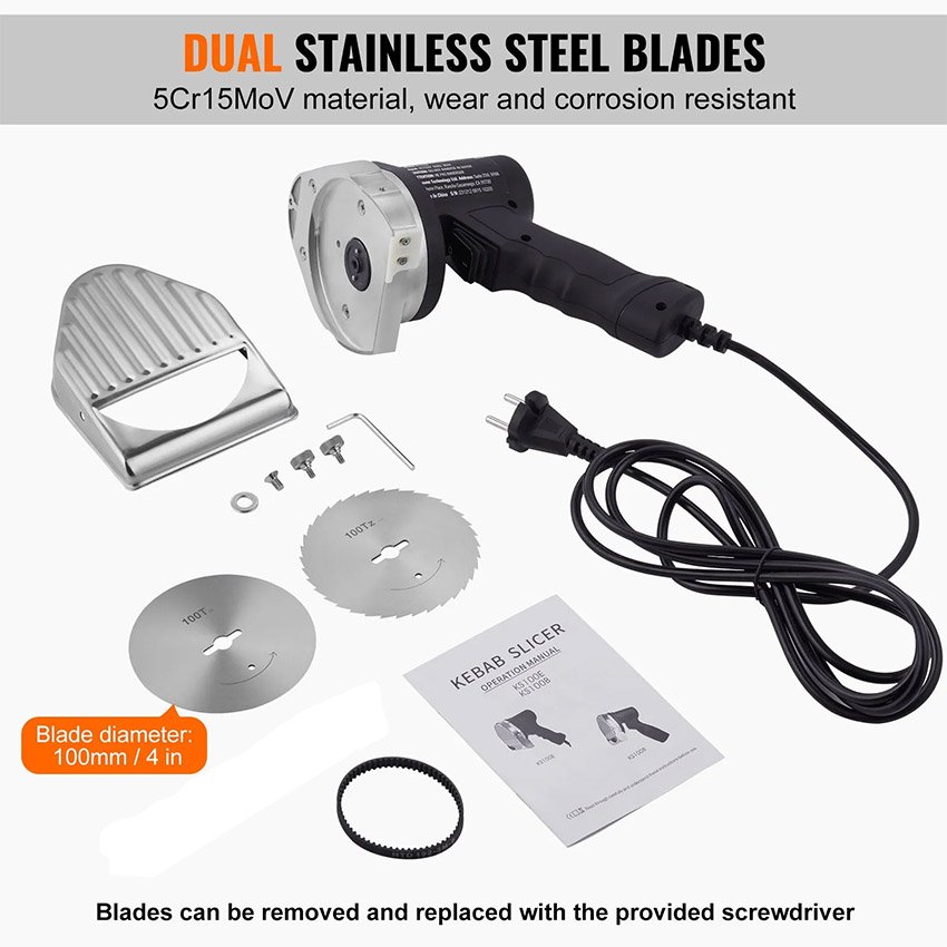 VEVOR Couteau à Kebab Électrique 80 W, Trancheuse à Viande Turc Shawarma Döner Kebab Commerciale en Inox, avec 2 Lames Diamètre 100 mm, Épaisseur Réglable 0-8 mm, pour Restaurant, Snack-bar, Barbecue