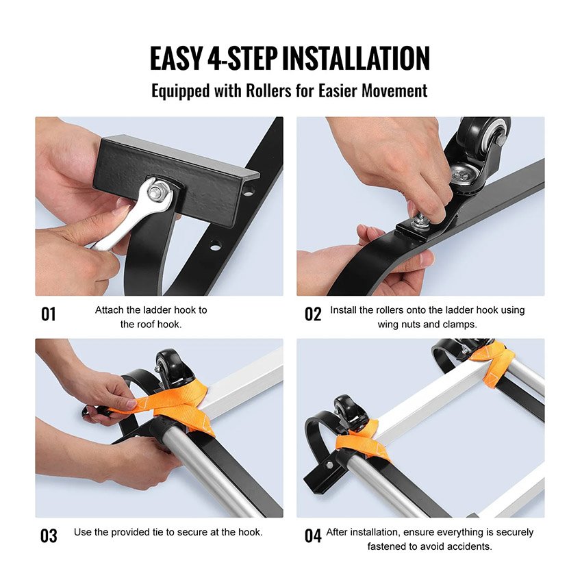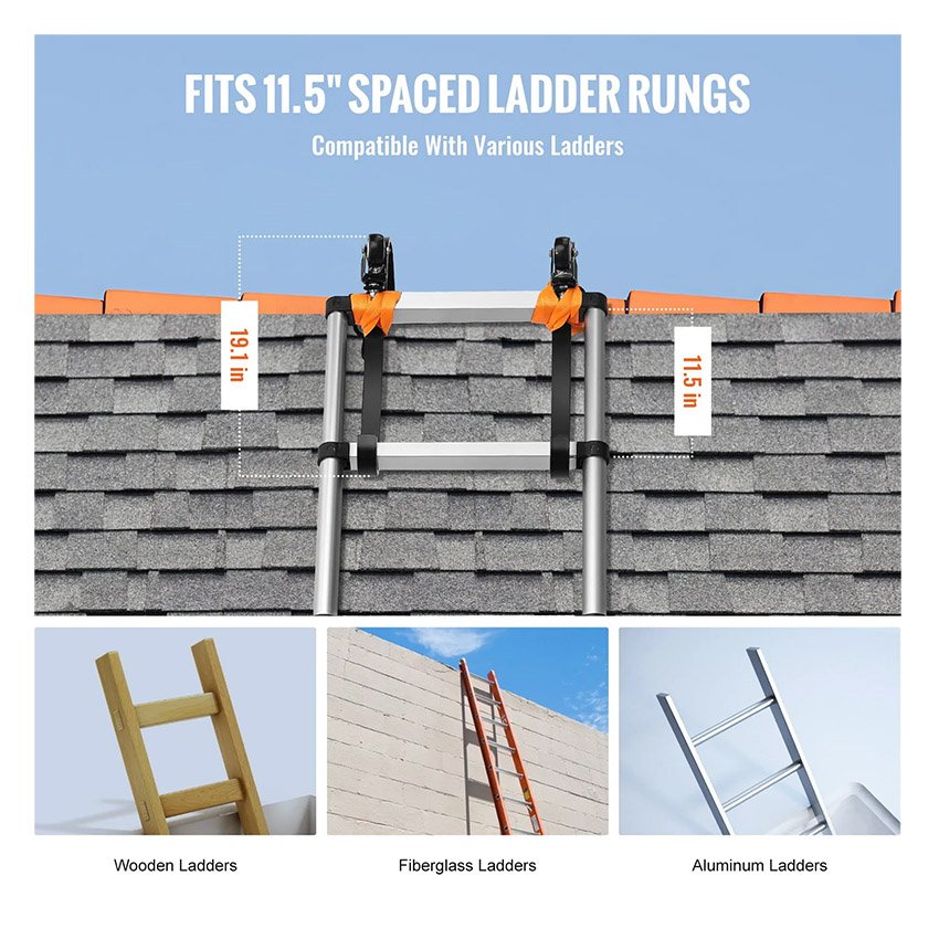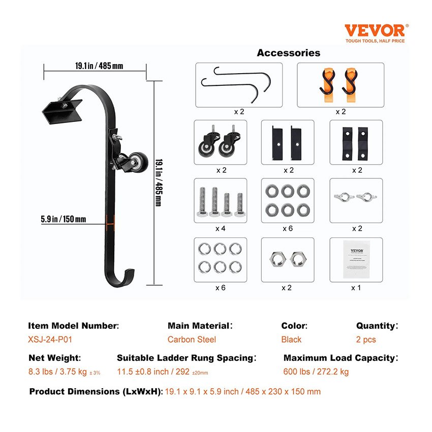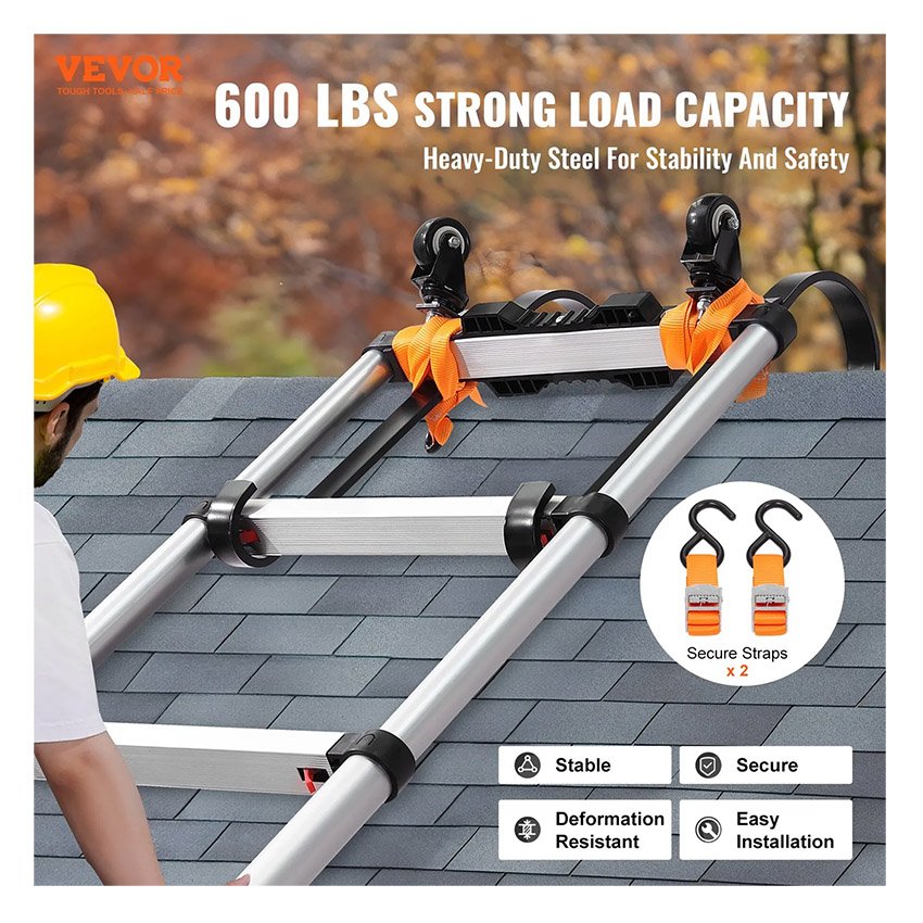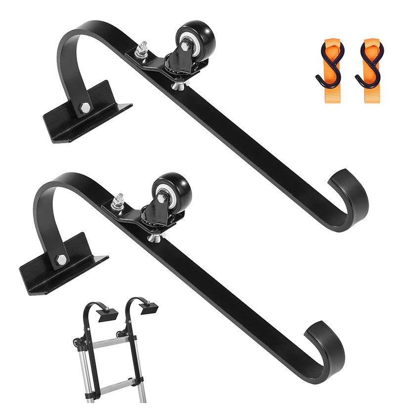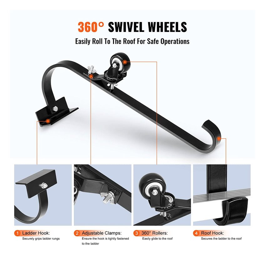 VEVOR Crochet pour échelle de toit, lot de 2, stabilisateur d’échelle en acier avec roue fixe et barre pivotante, pour prévention des dommages, capacité charge 272,2 kg, extension pour toits raides