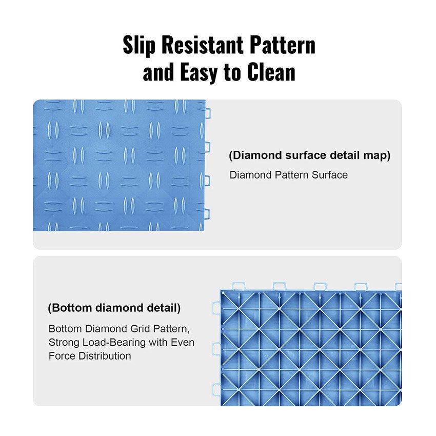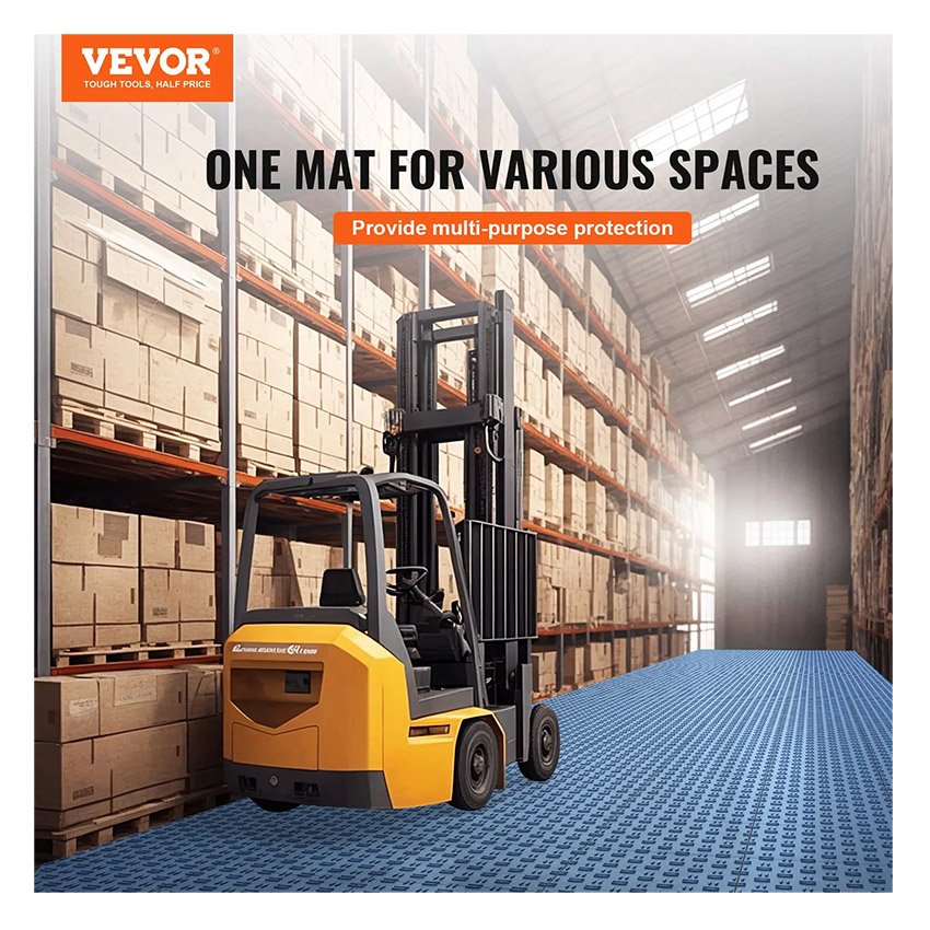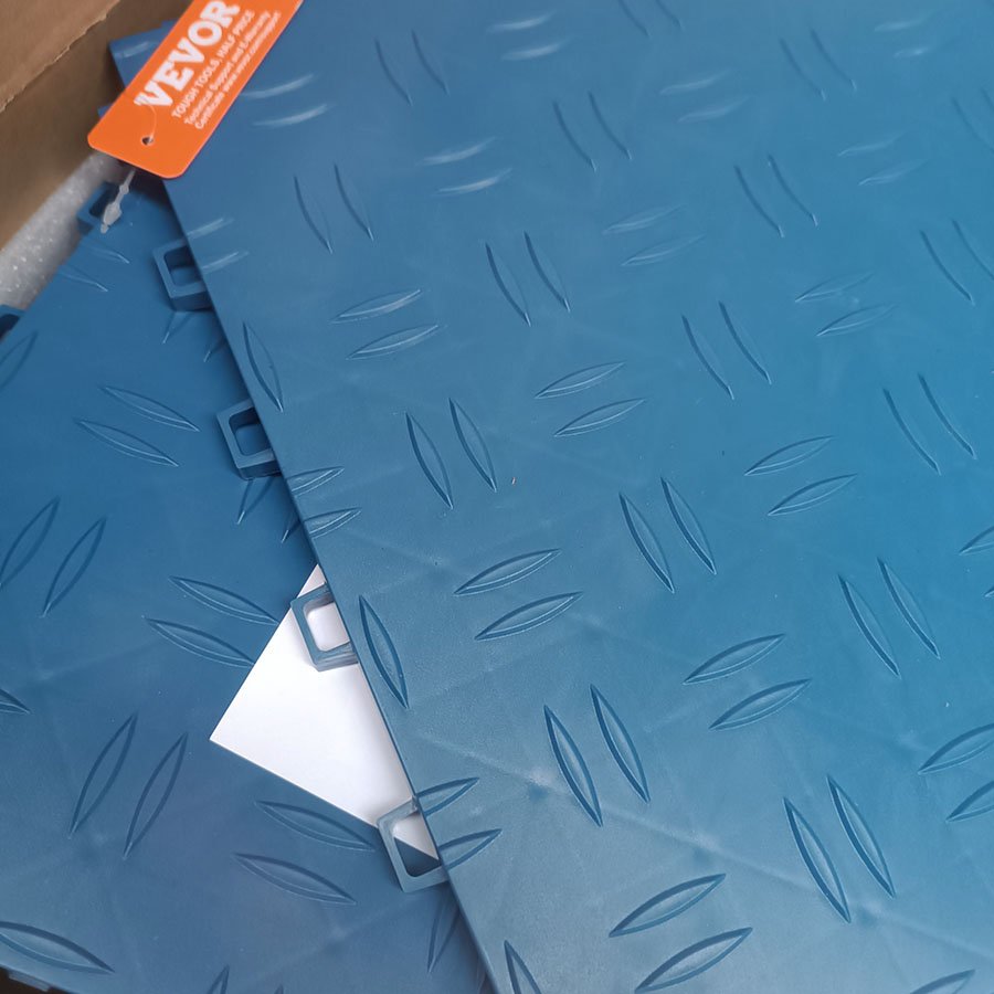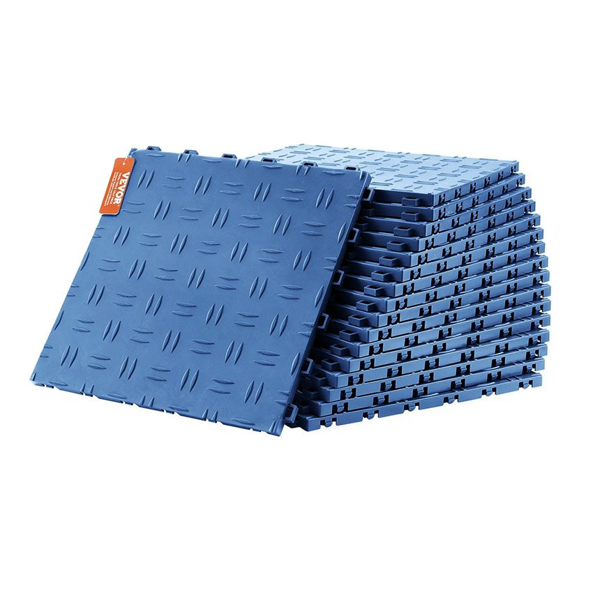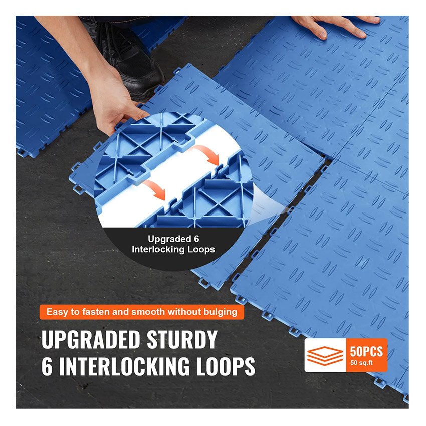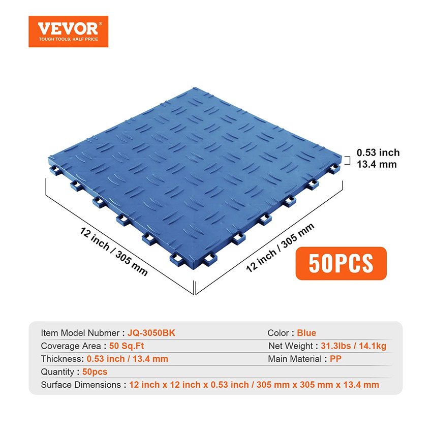 VEVOR Dalles de garage emboîtables, lot de 50, revêtement de sol garage en PP, 305 x 305 x 13,4 mm, texture double face antidérapante, pour protection garages, sous-sols, ateliers de réparation, bleu