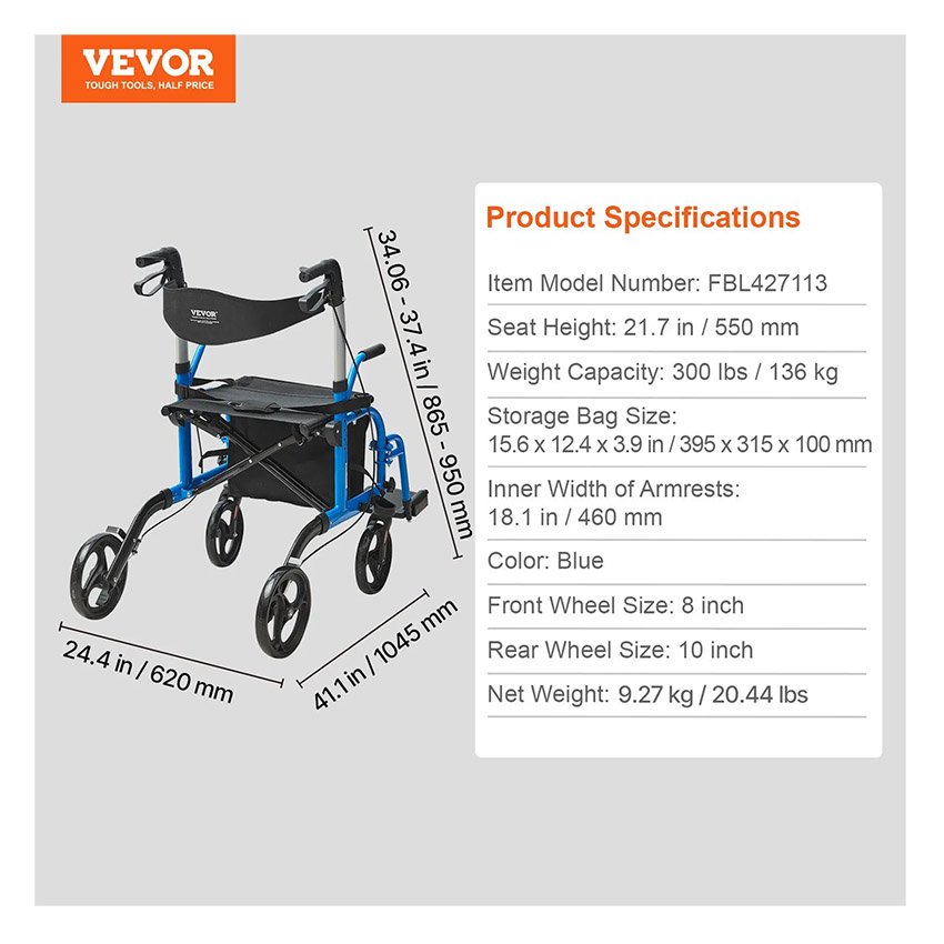 ✔ Conception multifonctionnelle 2 en 1 : le combo de fauteuil roulant 2 en 1 de VEVOR offre un soutien stable et une mobilité pratique pour les personnes âgées. Il sert à la fois de déambulateur et de fauteuil roulant, offrant des options flexibles pour les personnes à mobilité réduite. Cette conception multifonctionnelle permet aux personnes âgées de maintenir un mode de vie actif et d’améliorer leur indépendance et leur qualité de vie.