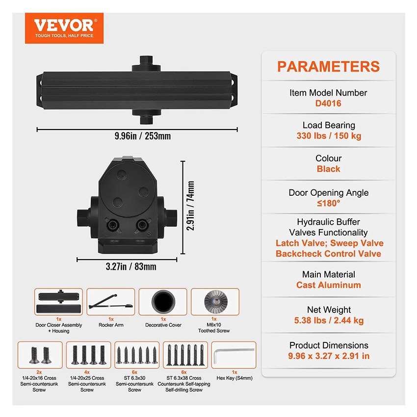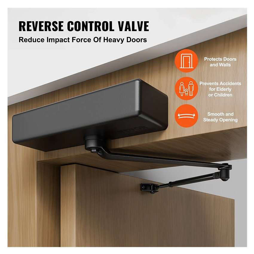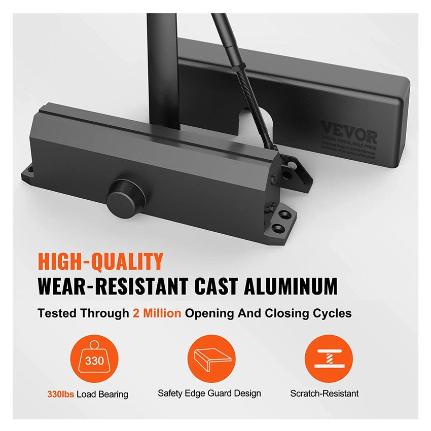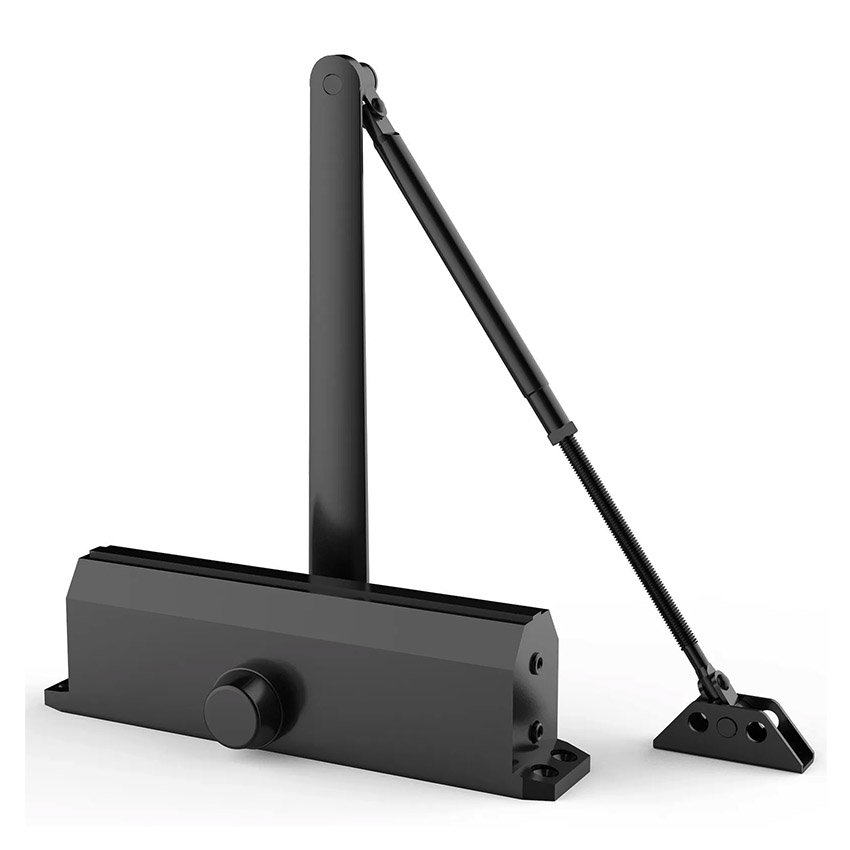 Ferme-porte automatique pour usage commercial ou résidentiel, pour portes pesant jusqu’à 150 kg, taille réglable, amortisseur hydraulique, corps robuste en fonte d’aluminium, installation facile, noir