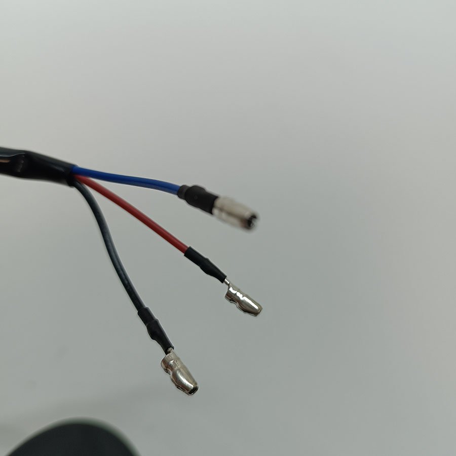 – Connexions : 3 fils (rouge, bleu, noir) – frein, veilleuse, masse