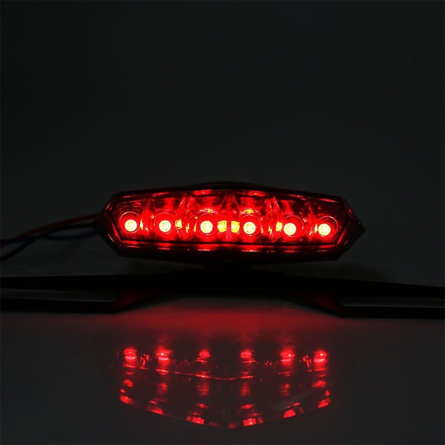 📄 Feu arrière LED universel pour moto tout-terrain, avec support de plaque intégré.