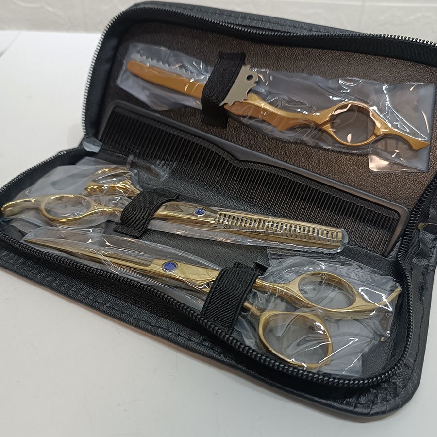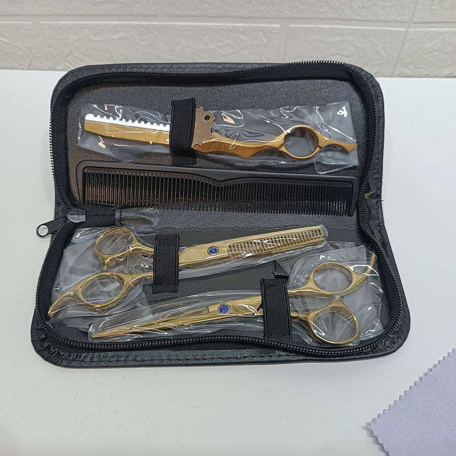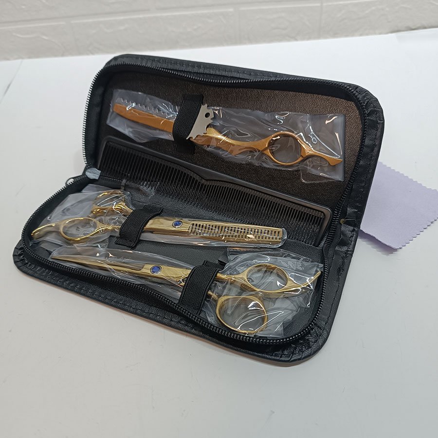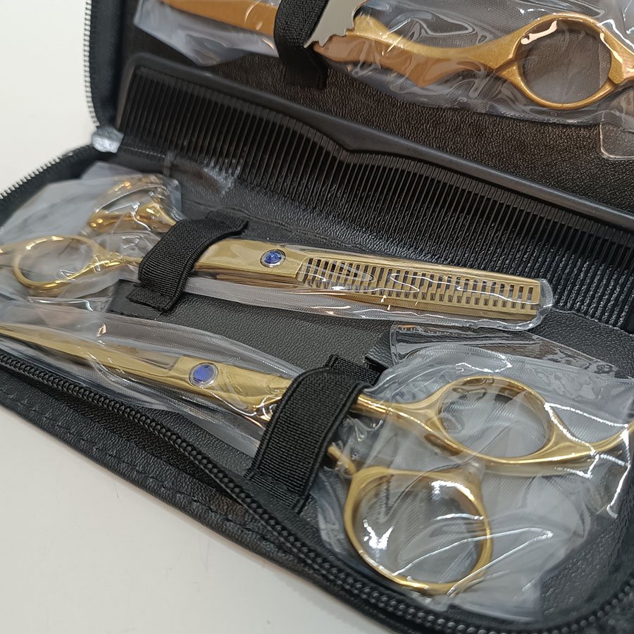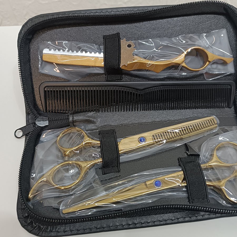 Kit Ciseaux de Coiffure Professionnels Dorés Barber Hairdressing
