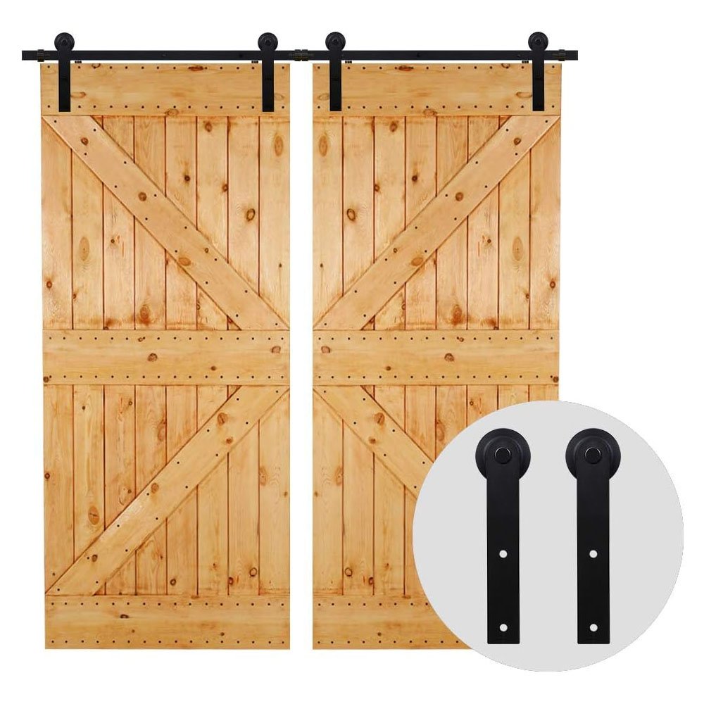 Rail porte coulissante 3m, Kit Quincaillerie de Porte Coulissante de Grange 300 cm, double porte coulissante, Noir