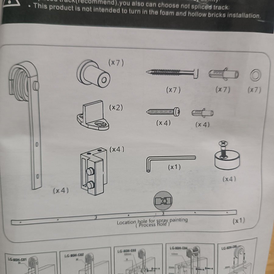 🔹 Tous les accessoires pour assembler la porte coulissante sont inclus (sans panneau de porte)