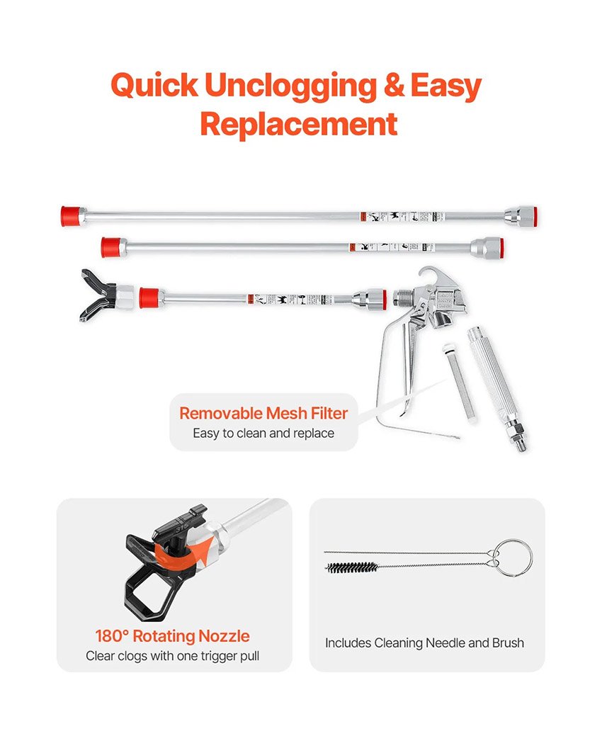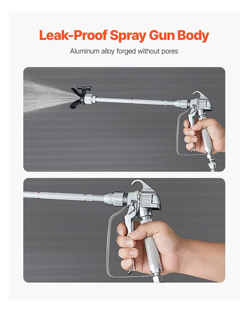 ✔ Durable et fiable : le tuyau du pistolet pulvérisateur de peinture sans air est fabriqué avec des matériaux à haute résistance pour une structure robuste et une résistance supérieure aux chocs. Les composants scellés empêchent les fuites de peinture, assurant un fonctionnement sûr