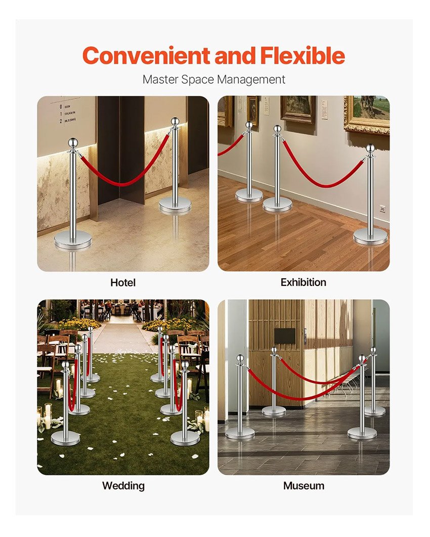 ✔ Barrières de contrôle des foules : Fabriqué en acier inoxydable 201 durable, ce poteau de poteau assure une séparation efficace et une gestion des foules. Qu’il s’agisse d’un mariage, d’un musée ou d’une fête, c’est votre solution idéale pour organiser les espaces et maintenir l’ordre