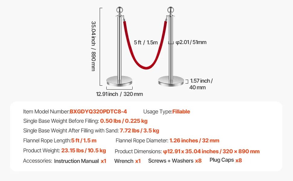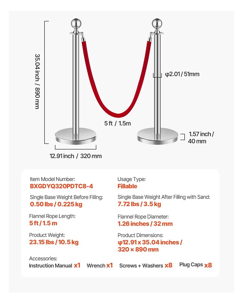 ✔ Base stable et épaisse : avec une large base en PE antidérapante et une conception à injection de sable, nos poteaux et cordes en velours sont conçus pour durer. La base remplissable peut supporter jusqu’à 3,5 kg lorsqu’elle est remplie de sable, résistant à la fois aux impacts soudains et à la lumière directe du soleil