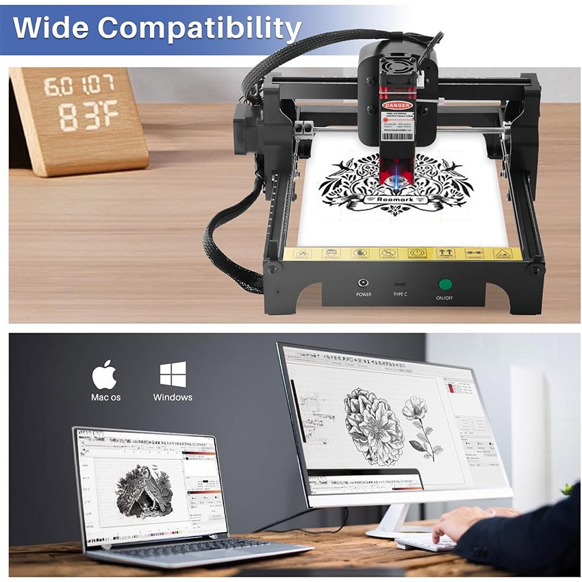 – Convivial et compatible : Notre machine de gravure laser sur bois bénéficie d’une excellente compatibilité logicielle et se connecte à votre ordinateur via USB. Elle est compatible avec les logiciels de gravure laser les plus courants tels que LightBurn et LaserGRBL (compatible avec iOS, Windows et Linux). Gravez une large gamme de matériaux, notamment le bois, certains métaux, l’acrylique opaque, le verre (noir), etc