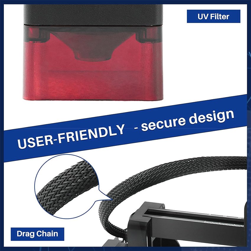 – Conçue pour vous : Notre machine à graver sur bois est équipée d’un interrupteur d’arrêt d’urgence intégré pour une utilisation en toute sécurité et tranquillité d’esprit. Le filtre UV protège vos yeux en filtrant 97 % de la lumière nocive. Le système de gestion des câbles maintient votre espace de travail organisé