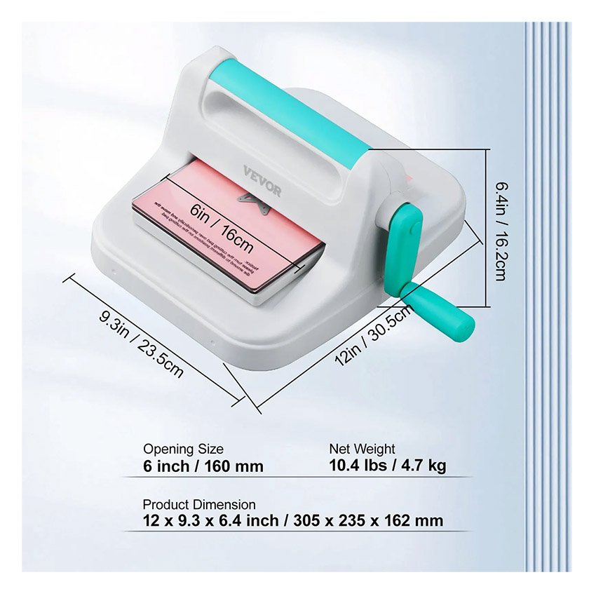Machine de découpe et d’embossage manuelle VEVOR, ouverture de 15,2 cm, pour loisirs créatifs et scrapbooking.