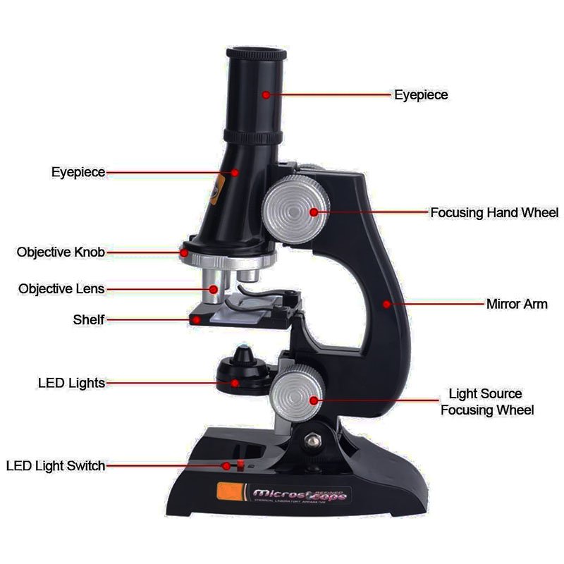 Ce kit complet inclut un microscope avec 3 niveaux de grossissement (100x / 200x / 450x), une source lumineuse intégrée, et plusieurs accessoires pour réaliser ses premières observations scientifiques.