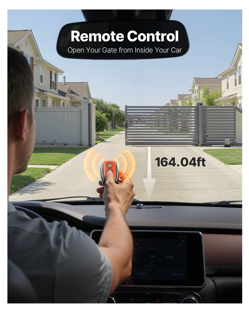 ✔ Accès par télécommande : L’ouvre-porte coulissante comprend deux télécommandes d’une portée de 50 m et prend en charge jusqu’à 40 télécommandes pour les grands ménages, les communautés, les entreprises ou les écoles.