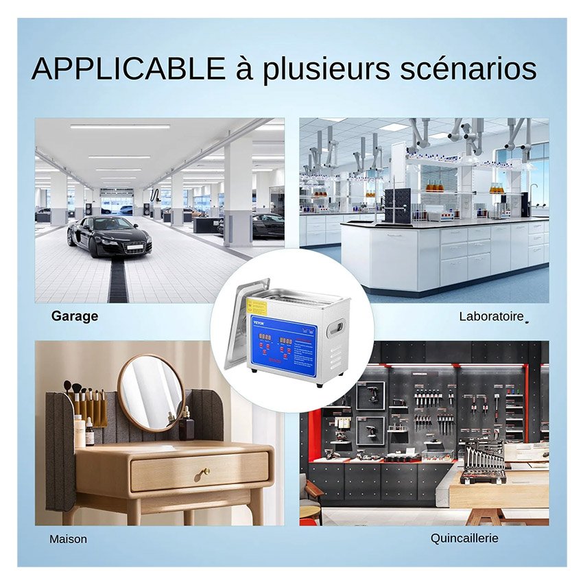 VEVOR Nettoyeur A Ultrasons 3L Ultrasonic Cleaner Professionnel Nettoyeur Digital Affichage Ultrasonique
