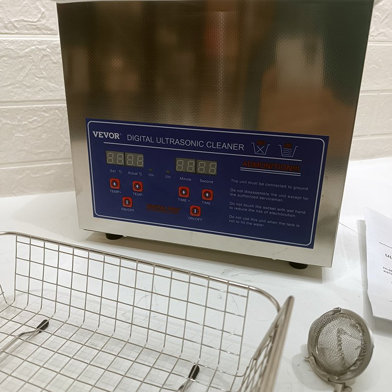 – Matériau de Qualité Supérieur de Type SUS 304 : Taille du réservoir : 2,8-3 L ; Puissance ultrasonique : 120 W ; Puissance de chauffage : 100 W. Cet appareil de nettoyage par ultrasons est construit en acier premium inoxydable robuste de type 304. Cela lui garantit l’absence de fuite d’eau et une longue durée de vie. En plus, il dispose d’un panier supplémentaire pour réduire les collisions entre les objets pointus et le réservoir.