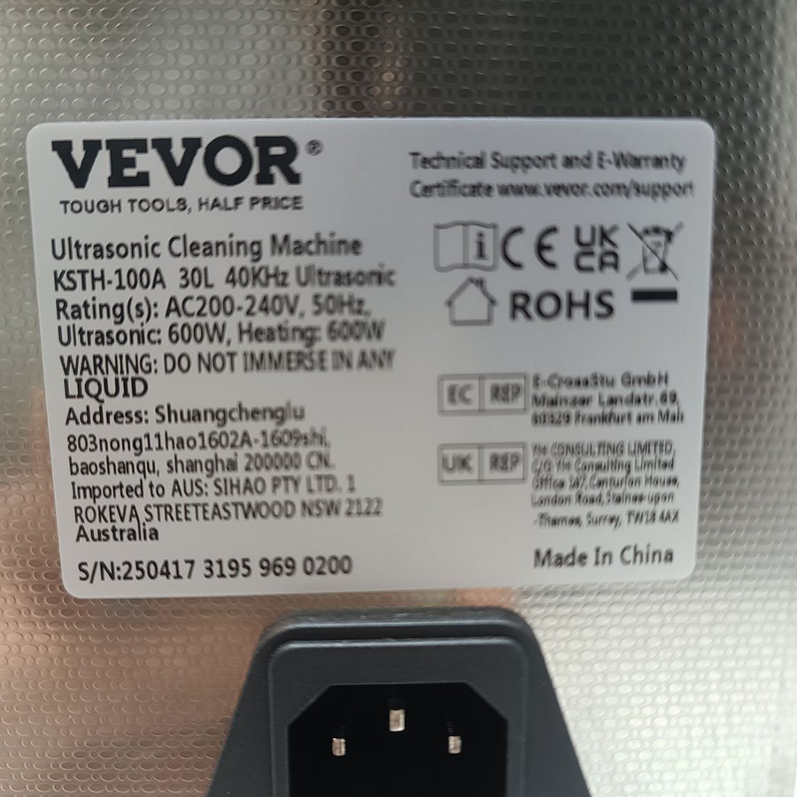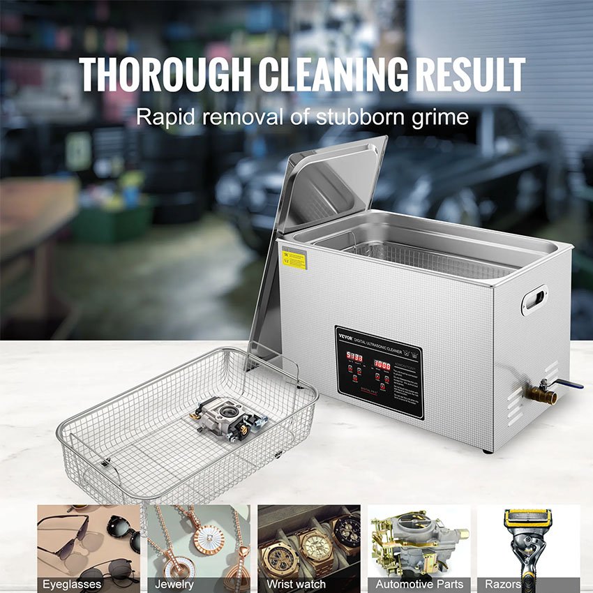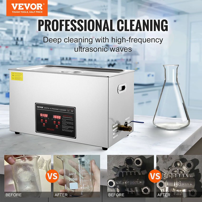 VEVOR Nettoyeur à ultrasons Nettoyeur à ultrasons en acier inoxydable 752 W, 30 L Nettoyeur à ultrasons avec affichage numérique 0-30 min, nettoyage par ultrasons pour bijoux, lunettes, montres, etc.