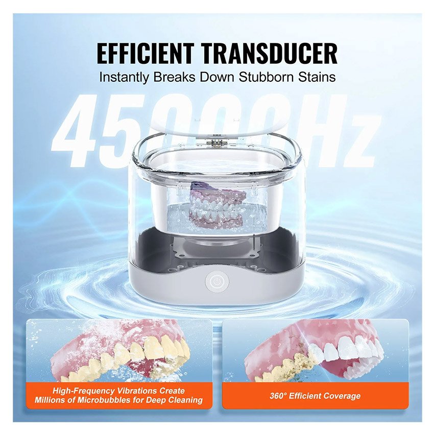 ✔ Nettoyage en profondeur sans recoins : l’alternative améliorée aux brosses à dents traditionnelles ! Ce nettoyeur à ultrasons est 80 % plus efficace que les brosses à dents classiques, offrant un nettoyage en profondeur des prothèses dentaires sans laisser aucun recoin intact. Il élimine efficacement 99 % des saletés, procurant une sensation de fraîcheur sans précédent.