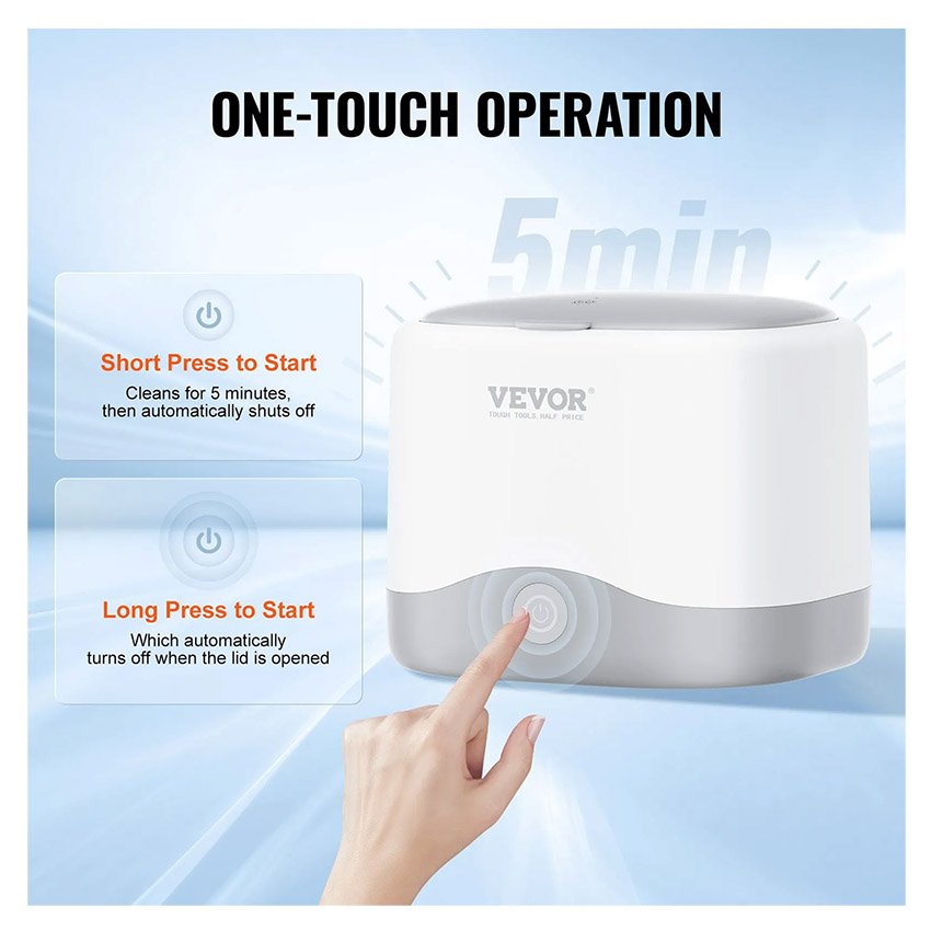✔ Simple et facile à utiliser : le contrôle à un seul bouton rend le nettoyage sans effort. Une courte pression démarre le cycle de nettoyage automatique de 5 minutes ; une longue pression active la lumière UV. Le couvercle se ferme automatiquement lorsqu’il est ouvert, ce qui rend l’opération simple et assure un nettoyage complet en une seule fois.
