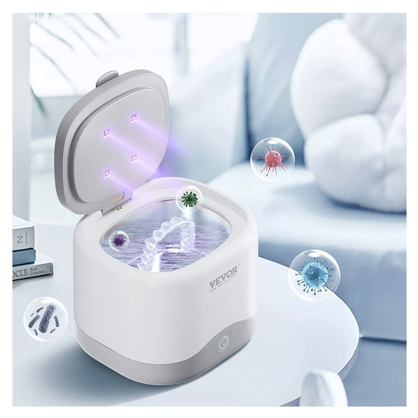 ✔ Stérilisation UV : pour assurer une propreté parfaite, la partie supérieure est équipée de quatre lampes de stérilisation UV qui éliminent efficacement 99,99 % des menaces potentielles de saleté. Cela assure que vos prothèses dentaires sont non seulement propres mais également sûres, ajoutant une couche de protection supplémentaire pour votre santé bucco-dentaire.