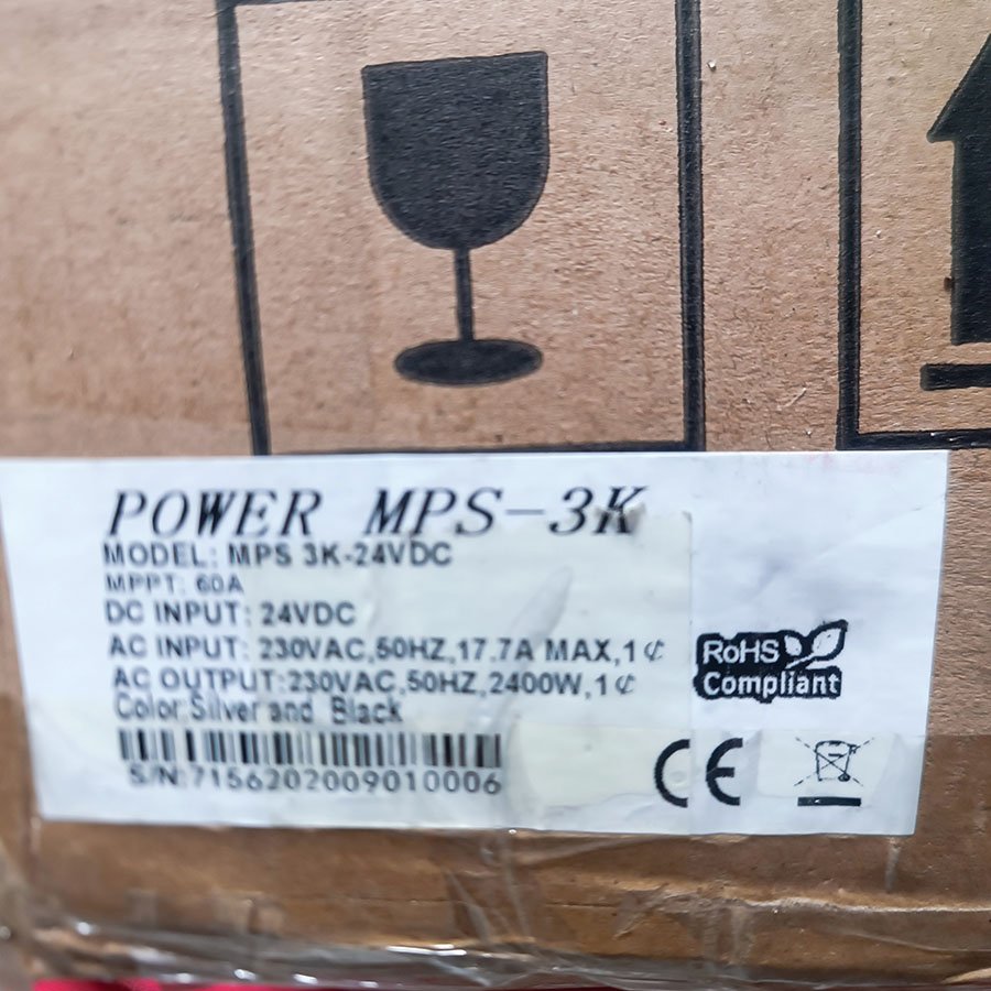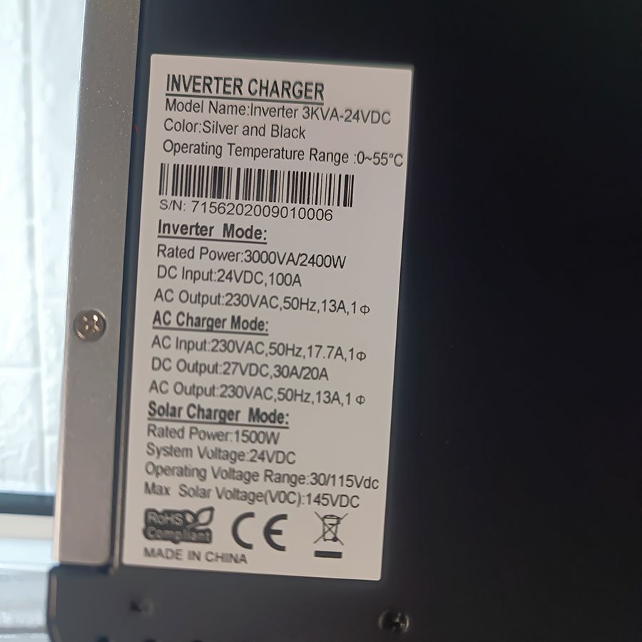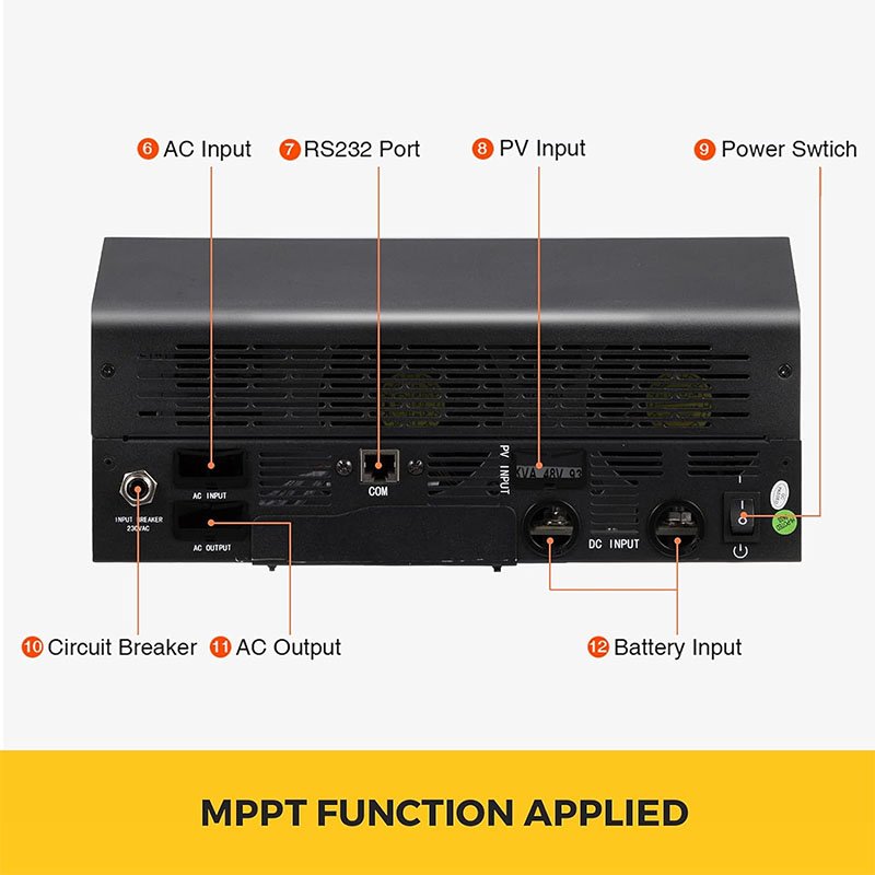 Onduleur hybride 3000VA 24V DC vers 230V AC Onduleur avec chargeur MPPT et chargeur de batterie intégré Onduleur à Onde Sinusoïdale Pure 3KVA, 2400W