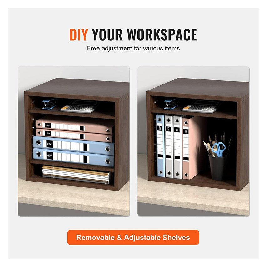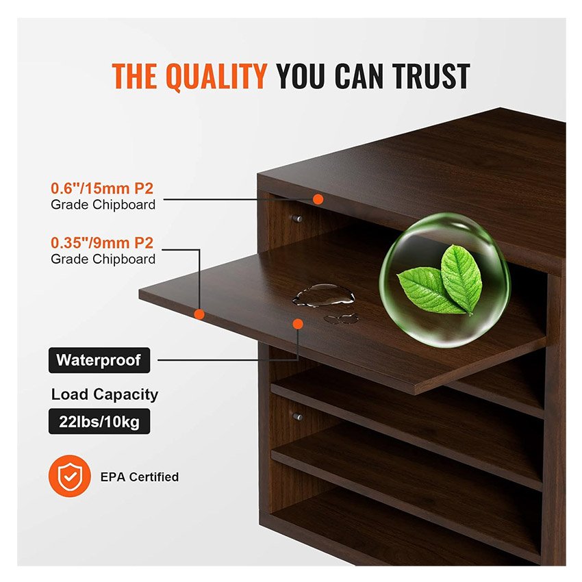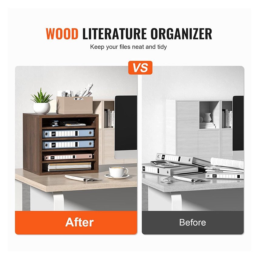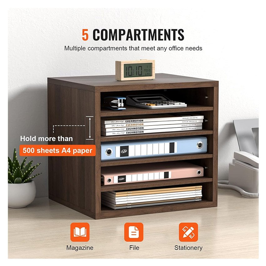 VEVOR Organisateur de Bureau en Bois 35,5×30,5×33 cm Trieur de Documents à 5 Compartiments Corbeille à Courrier Panneau Aggloméré Étagère Amovible Classeur pour Rangement Fichiers Magazines École Brun