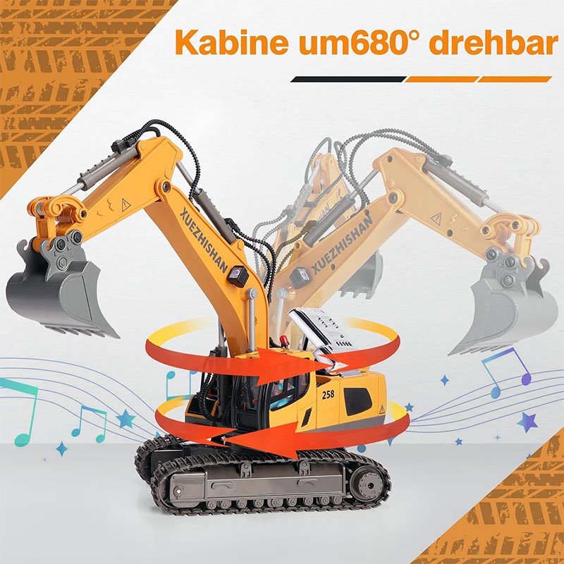 Let your child explore construction fun with this realistic 11-channel RC excavator, model XUEZHISHAN / HUINA. Designed for kids aged 8+, it features multiple functions, die-cast metal parts, and a 2.4GHz remote control for smooth operation indoors or outdoors.